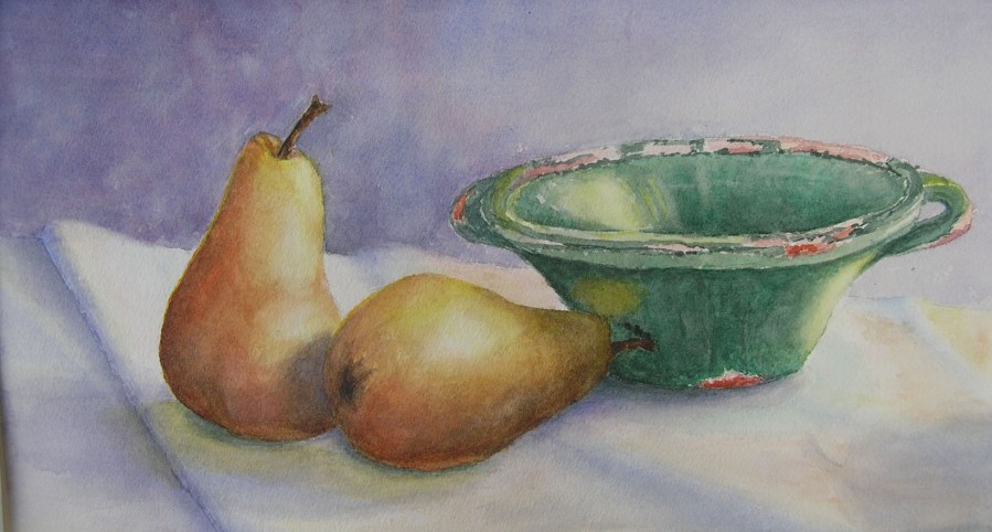“Pears with Green Bowl”, Watercolor
