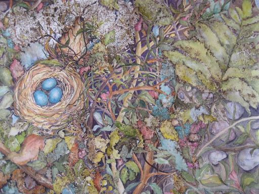 ”Nest in Seclusion” Gunpowder & Watercolor 18”w x14”h