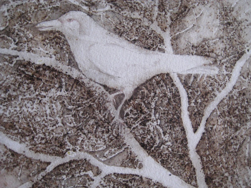 ”White Bird Bliss”, gunpowder and graphite,H 9” x W 10” C.A.Centre